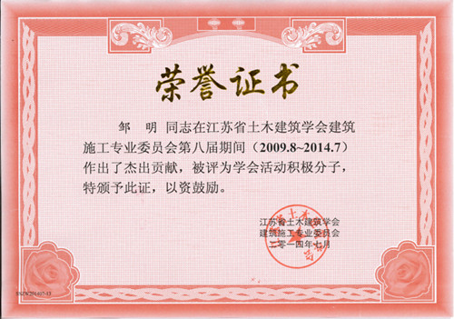 7月23日~25日,江蘇省土木建筑學(xué)會建筑施工專業(yè)委員會第九屆一次會議暨2013年度建筑施工學(xué)術(shù)交流會在常州召開。 會議組織了學(xué)術(shù)交流,主題圍繞建筑結(jié)構(gòu)施工新技術(shù)、地基基礎(chǔ)施工新技術(shù)、模板腳手架施工新技術(shù)、綠色環(huán)保及節(jié)能新技術(shù)、裝飾裝修新技術(shù)、現(xiàn)代施工管理及質(zhì)量安全監(jiān)控等。 期間,召開了江蘇省土木建筑學(xué)會建筑施工專業(yè)委員會第八屆六次會議、第九屆一次會議,總結(jié)交流各市學(xué)會工作、評選學(xué)會活動積極分子、布置2014年省建筑施工專業(yè)委員會工作;完成了省土木建筑學(xué)會施工專業(yè)委員會換屆,組聘新一屆委員會。刁愛國教授級高工續(xù)聘為第九屆建筑施工專業(yè)委員會主任委員,公司總經(jīng)理鄒明研究員級高工續(xù)聘為第九屆建筑施工專業(yè)委員會委員,并被評為學(xué)會活動積極分子。 ![]() ![]() ![]() 2014.7.25 | ||