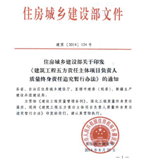 為進(jìn)一步落實(shí)建筑施工項(xiàng)目經(jīng)理質(zhì)量安全責(zé)任,保證工程質(zhì)量安全,8月25日,國家住建部頒發(fā)了建質(zhì)[2014]123號(hào)文件“住房城鄉(xiāng)建設(shè)部關(guān)于印發(fā)《建筑施工項(xiàng)目經(jīng)理質(zhì)量安全責(zé)任十項(xiàng)規(guī)定(試行)》的通知”。 十項(xiàng)規(guī)定中第四項(xiàng)規(guī)定:項(xiàng)目經(jīng)理必須組織對進(jìn)入現(xiàn)場的建筑材料、構(gòu)配件、設(shè)備、預(yù)拌混凝土等進(jìn)行檢驗(yàn),未經(jīng)檢驗(yàn)或檢驗(yàn)不合格,不得使用;必須組織對涉及結(jié)構(gòu)安全的試塊、試件以及有關(guān)材料進(jìn)行取樣檢測,送檢試樣不得弄虛作假,不得篡改或者偽造檢測報(bào)告,不得明示或暗示檢測機(jī)構(gòu)出具虛假檢測報(bào)告。 附件一“建筑施工項(xiàng)目經(jīng)理質(zhì)量安全違法違規(guī)行為行政處罰規(guī)定”中對應(yīng)違反第四項(xiàng)規(guī)定的行政處罰:(1)未對進(jìn)入現(xiàn)場的建筑材料、建筑構(gòu)配件、設(shè)備、預(yù)拌混凝土等進(jìn)行檢驗(yàn)的,對施工單位按照《建設(shè)工程質(zhì)量管理?xiàng)l例》第65條規(guī)定實(shí)施行政處罰,對項(xiàng)目經(jīng)理按照《建設(shè)工程質(zhì)量管理?xiàng)l例》第73條規(guī)定實(shí)施行政處罰;(2)使用不合格的建筑材料、建筑構(gòu)配件、設(shè)備的,對施工單位按照《建設(shè)工程質(zhì)量管理?xiàng)l例》第64條規(guī)定實(shí)施行政處罰,對項(xiàng)目經(jīng)理按照《建設(shè)工程質(zhì)量管理?xiàng)l例》第73條規(guī)定實(shí)施行政處罰;(3)未對涉及結(jié)構(gòu)安全的試塊、試件以及有關(guān)材料取樣檢測的,對施工單位按照《建設(shè)工程質(zhì)量管理?xiàng)l例》第65條規(guī)定實(shí)施行政處罰,對項(xiàng)目經(jīng)理按照《建設(shè)工程質(zhì)量管理?xiàng)l例》第73條規(guī)定實(shí)施行政處罰。 附件二“建筑施工項(xiàng)目經(jīng)理質(zhì)量安全違法違規(guī)行為記分管理規(guī)定”中列出,項(xiàng)目經(jīng)理有下列行為之一的,一次記6分:未按規(guī)定組織對涉及結(jié)構(gòu)安全的試塊、試件以及有關(guān)材料進(jìn)行見證取樣的;送檢試樣弄虛作假的;篡改或者偽造檢測報(bào)告的;明示或暗示檢測機(jī)構(gòu)出具虛假檢測報(bào)告的。 住建部同日還頒發(fā)了“住房城鄉(xiāng)建設(shè)部關(guān)于印發(fā)《建筑工程五方責(zé)任主體項(xiàng)目負(fù)責(zé)人質(zhì)量終身責(zé)任追究暫行辦法》的通知”。建筑工程五方責(zé)任主體是指承擔(dān)建筑工程項(xiàng)目建設(shè)的建設(shè)單位項(xiàng)目負(fù)責(zé)人、勘察單位項(xiàng)目負(fù)責(zé)人、設(shè)計(jì)單位項(xiàng)目負(fù)責(zé)人、施工單位項(xiàng)目經(jīng)理、監(jiān)理單位總監(jiān)理工程師。