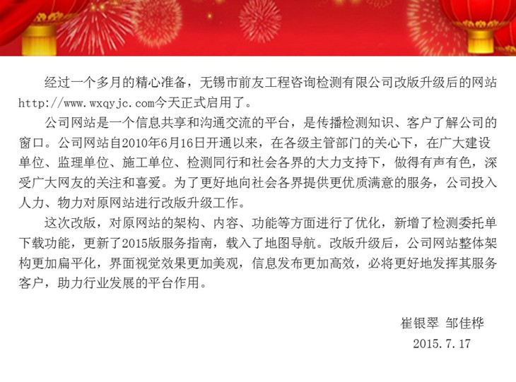 | 前友檢測(cè)公司網(wǎng)站改版升級(jí)了 | ||