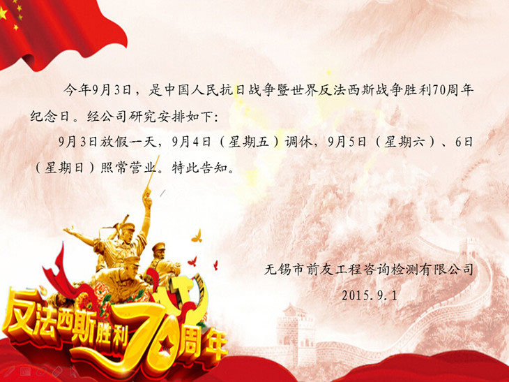 | 抗戰(zhàn)勝利紀(jì)念日放假公告 | ||