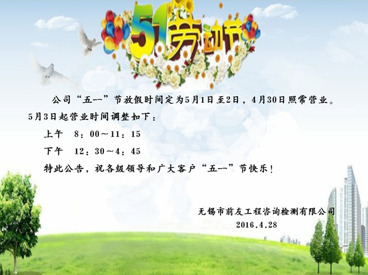 | 關(guān)于“五一”節(jié)放假及節(jié)后營(yíng)業(yè)時(shí)間調(diào)整的公告 | ||