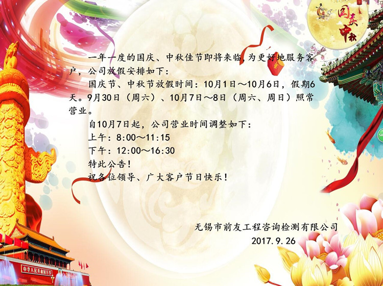 | 關(guān)于國(guó)慶、中秋節(jié)放假及節(jié)后營(yíng)業(yè)時(shí)間調(diào)整的公告 | ||
