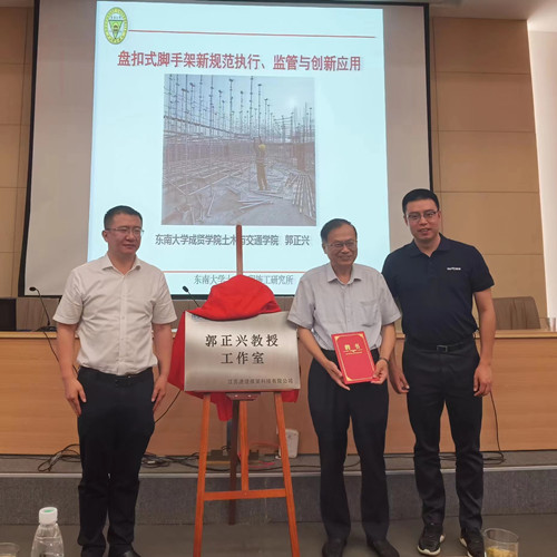 6月19日,無錫市建設(shè)工程“安全生產(chǎn)月”主題活動《盤扣式腳手架新規(guī)范執(zhí)行與監(jiān)管及創(chuàng)新應(yīng)用》專題講座在無錫錫山三建舉辦。這次活動由無錫市住建局舉辦,無錫市土木建筑學(xué)會、無錫市建筑業(yè)協(xié)會承辦,無錫錫山三建、江蘇速捷模架科技有限公司協(xié)辦。 會上,市住建局副局長朱燁昕作主旨講話,錫山三建董事長錢新華致辭并介紹東南大學(xué)郭正興教授與江蘇速捷,“郭正興教授工作室”揭牌。 郭正興教授作了“盤扣式腳手架新規(guī)范執(zhí)行與監(jiān)管及創(chuàng)新應(yīng)用”主題講座,內(nèi)容包括:1)盤扣式鋼管腳手架新規(guī)范;2)盤扣式鋼管腳手架現(xiàn)場監(jiān)管;3)盤扣式鋼管腳手架創(chuàng)新應(yīng)用。講座中,首次提出了標(biāo)準(zhǔn)斜桿設(shè)置簡稱“塔中塔”設(shè)置(大塔套小塔)理論和構(gòu)造要求。 市、區(qū)建設(shè)主管部門領(lǐng)導(dǎo)、有關(guān)行業(yè)協(xié)會領(lǐng)導(dǎo)、市施工學(xué)術(shù)委員會委員、速接架研發(fā)團隊人員和規(guī)范編制組部分人員等近百人聽取了講座,無錫前友咨詢檢測公司派員參加。